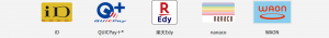 2019年5月時点ではFelica対応のおサイフケイタイ「iD」「Apple Pay(アップルペイ)」「楽天Edy」は使うことができるようです。
